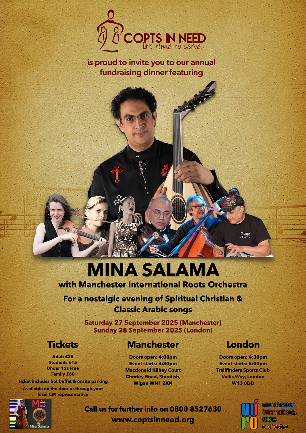 Copts In Need is proud to invite you to join us for our annual fundraising events featuring Mina Salama with Manchester International Roots Orchestra!